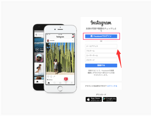 Facebookアカウントでinstagramのユーザーidを新規で申し込みすることも可能です。