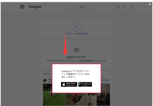 Facebookアカウントからログアウトしている場合には、ログインを求めるメッセージが表示されるので、ログインするとinstagramアカウントを作成できます。