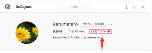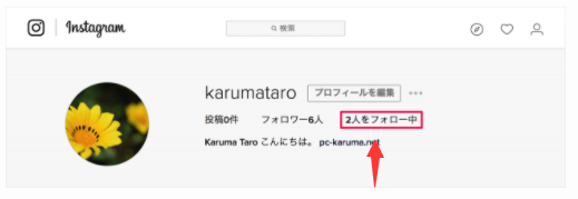 「◯人をフォロー中」というところで、フォローしているアカウント数を確認することができます。