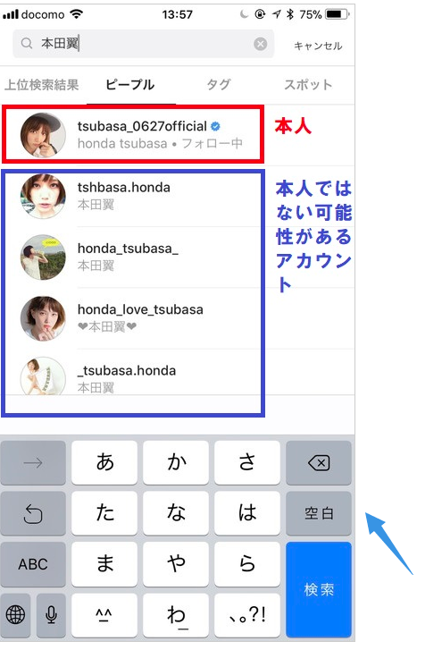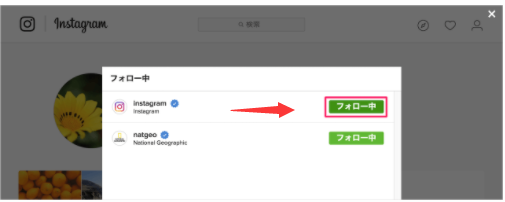 フォローをはずしたいアカウントの「フォロー中」をクリックしましょう。