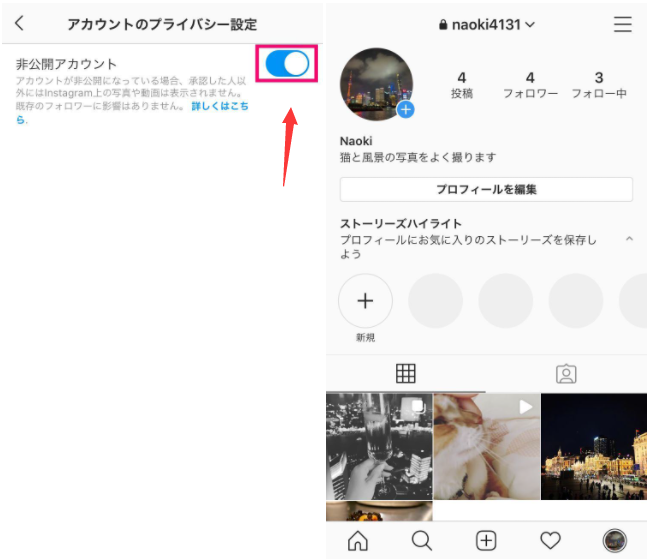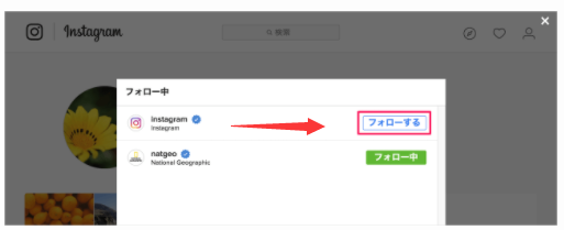 「フォロー中」というポップアップが表示され、フォロー中のアカウントが表示されるので