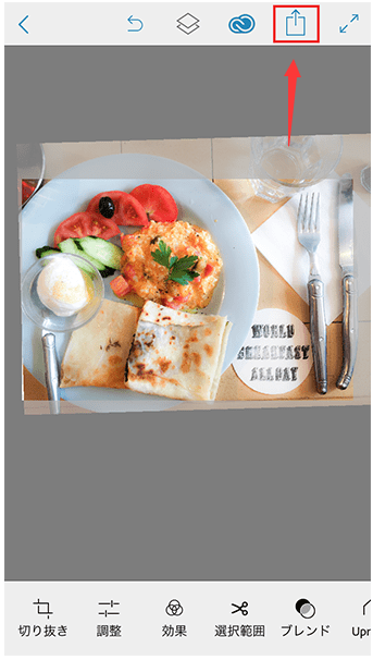 ↑編集を終えたら画面上部の「共有」アイコンをタップし、インスタグラムに共有しよう